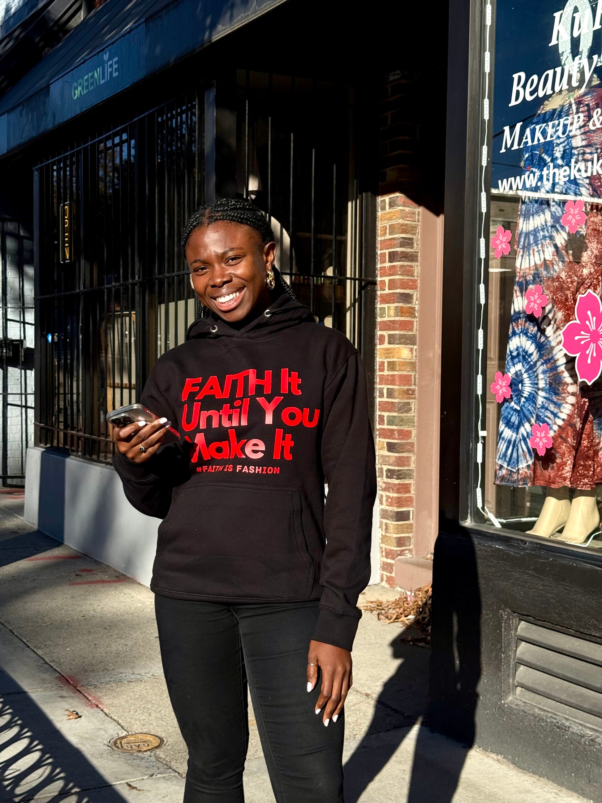 The "Faith It Until You Make It" is a part of our Faith Is Fashion Brand. This unisex hoodie is a great addition to any wardrobe. The long sleeve design provides warmth and coverage for the arms, while the sweatshirt style is comfortable and cozy. The casual style of this hoodie makes it perfect for a variety of settings and occasions, from running errands to hanging out with friends.